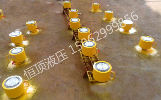 7、如需几只千斤顶同时起重时,除应正确安放千斤顶外,应使用多顶分流阀,且每台千斤顶的负荷应均衡,注意保持起 升速度同步。还必须考虑因重量不匀地面可能下陷的情况,防止被举重物产生倾斜而发生危险。